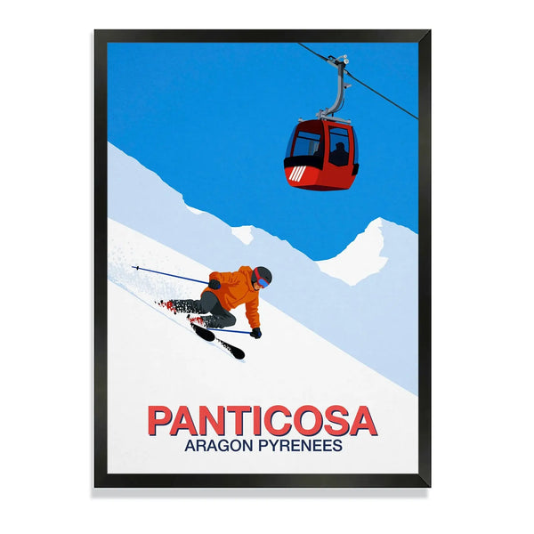 This is an original ski poster featuring the popular Spanish ski resort of Panticosa in the Aragon Pyrenees. This poster is from the series of prints featuring all your favourite worldwide ski resorts. The posters are a modern take on the vintage ski travel posters of the past. With each piece printed on high quality premium heavy weight matte 200gsm paper and will arrive in a protective tube. Add a wonderful accent to your room or office with these brightly painted posters.